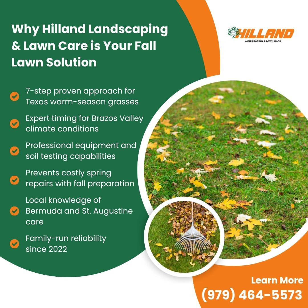 Bryan, TX – Hilland Landscaping & Lawn Care, a lawn care services company in Bryan, Texas, has published detailed fall lawn maintenance guidance for Brazos Valley homeowners seeking to protect their yards through the winter months. The Bryan-based company addresses common seasonal challenges facing Texas lawns while providing actionable steps for winter preparation.