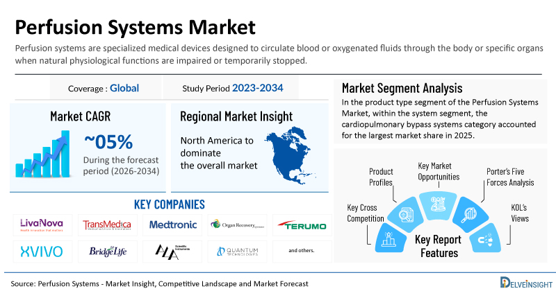 - Key Companies in the Perfusion Systems Market: LivaNova PLC, TransMedica, Inc., Medtronic, Organ Recovery Systems, Inc., Transmedics Inc., Terumo Corporation, XVIVO Perfusion AB, Visionary Medicare Solutions Pvt Ltd., Bridge to Life Ltd., Ala Scientific Instruments Inc., Quantum Technologies, Cytiva, Harvard Apparatus, Pedra Technology Pte Ltd., Getinge AB, Vascular Perfusion Solutions, Inc., Paragonic Technologies, Eurosets S.r.l, Soma Tech Intl, Repligen Corporation, and others